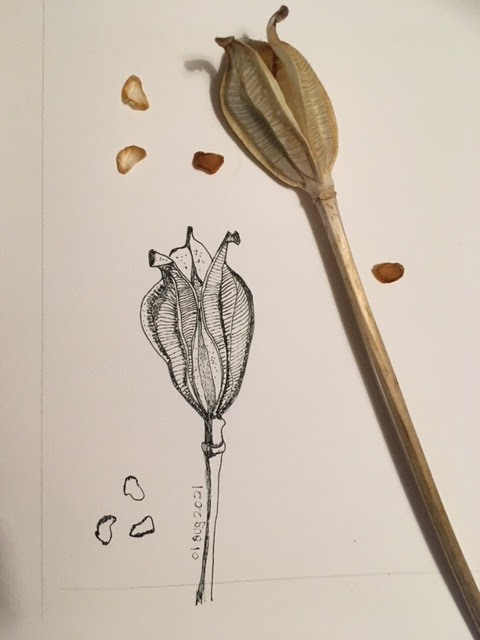 Not so sure about this last one -- my shapes are a bit off. A challenge to catch the curve of the dried pods.